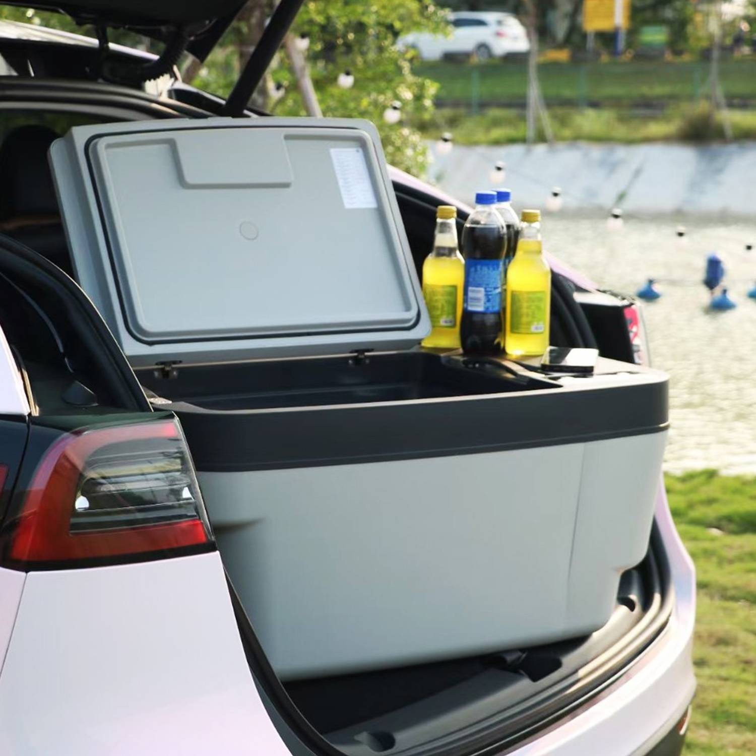 - This useful accessory transforms your Model Y boot into a mobile cooler.