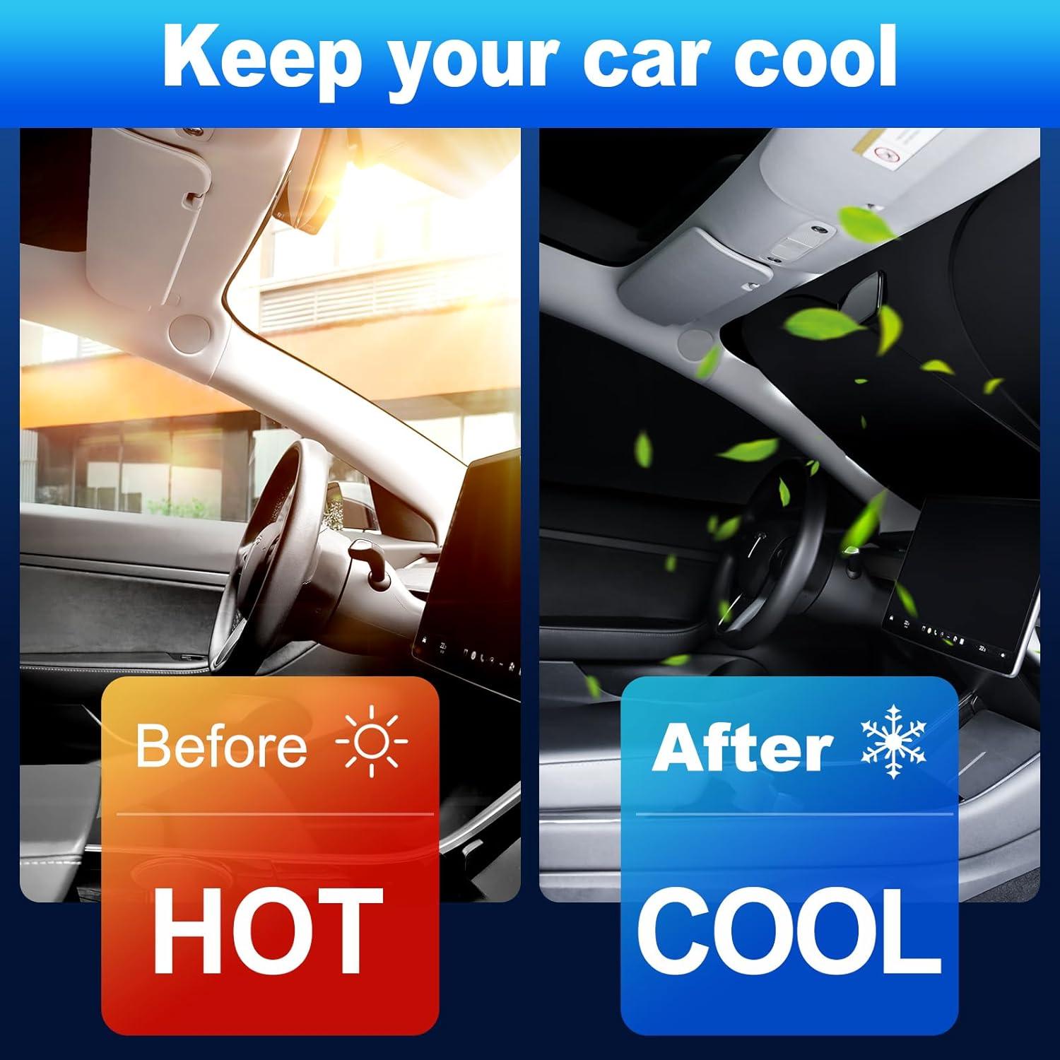 By blocking two-thirds of the solar heat load, the sunshade significantly reduces heat entering the cabin, leading to a decrease in interior temperature.